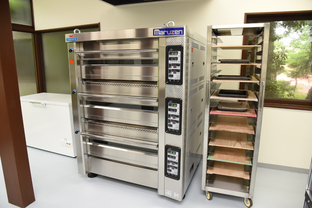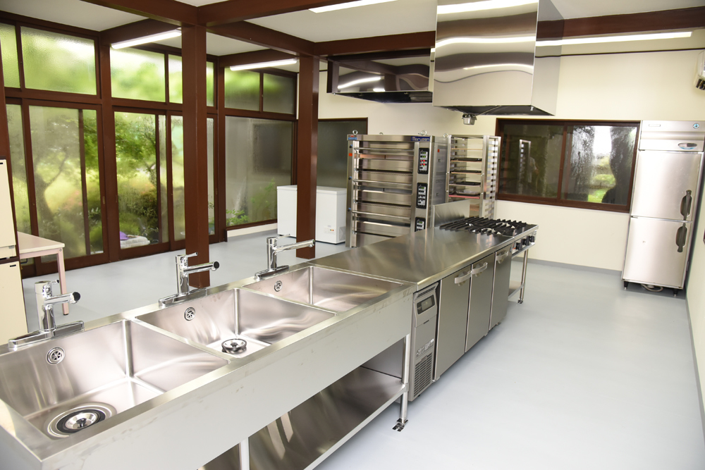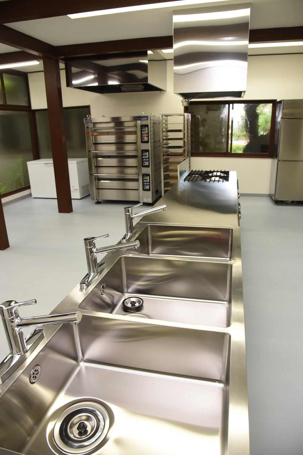 大型デッキオーブンや大型冷蔵庫などプロ仕様の機材を完備した本格的な製菓実習です。