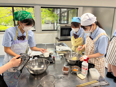 特別活動の時間で「ガトーショコラ」を作りました。ガトーショコラは、フランス発祥のチョコレートケーキの一種です。 「ガトー」はフランス語で「ケーキ」、「ショコラ」は「チョコレート」を意味し、その名の通り、チョコレートをたくさん使った濃厚な焼き菓子です。自分たちで手作りしたケーキの美味しそうな見た目と味に、大満足のようでした。
