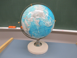 地学の授業で地球儀を使うことがあります。世界の広さ,大きさを感じてもらうのはもちろん,地球の自転,公転,内部構造など,宇宙レベルから見た地球を実感できる授業を心がけています。しかし,地球儀を持って校内を歩く私の姿を見て,生徒がかけてくれる言葉は「マダガスカル!」・・・