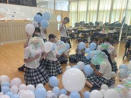 今日の放課後、中等部2年生の教室をのぞいてみると、今週末に開催される中等部オープンスクールに向けて、夏祭りの準備の真っ最中でした。教室では風船をふくらませたり、出し物の仕上げに熱心に取り組んだりする姿が見られました。「来てくれる人に楽しんでもらいたい」という思いが伝わってきて、当日がますます楽しみです。