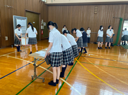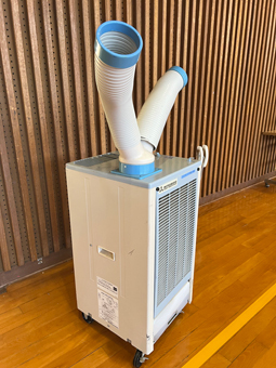 暑い日が続いていますが、体育館ではスポットクーラーを4台設置しております。体を動かす体育の授業では生徒たちがこのスポットクーラーを取り囲み涼んでいます。夏休み目前です。対策をしつつ、暑さに負けないよう励んでいます。