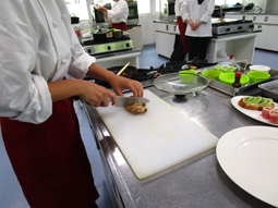 3年生パティシエコース・フードクラスの生徒たちは、来週に迫ってきた食物調理技術検定に向けて実習を重ねてきました。今日は本番を想定してフルコースかお弁当を完成させるということだそうです。食材の調理とともに時間配分や盛り付けまで気を配りながら行います。練習の成果を思う存分発揮してください。応援しています。