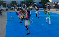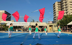 カラーガード部は、隅の浜土曜夜市に出演しました。中等部1年生は今回が初めてのステージ発表で、元気よく演技することができました。これから、夏本番です。暑さに負けず、勉強も部活動も頑張ってほしいです。