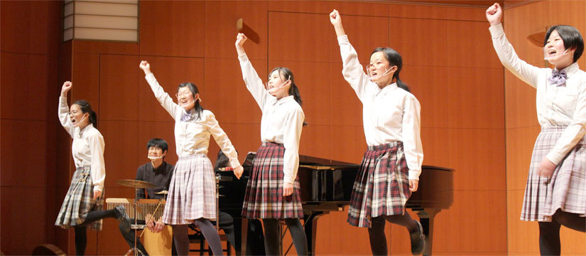 廿日市文化ホールウッドワンさくらぴあ小ホールにて、4回目のスプリングコンサートを開催しました。今年は、コロナ禍での開催となるため、コロナ感染予防対策を整えて演奏会を開催しました。今回は第2部でインドネシア民族楽器アンクロンの演奏団体「アルンバ広島」の皆様と一緒にインドネシア民謡などコーラスと打楽器のアンサンブルを演奏しました。お聞き苦しい点もあったと思いますが、感謝の気持ちを伝えられるよう精一杯演奏しました。