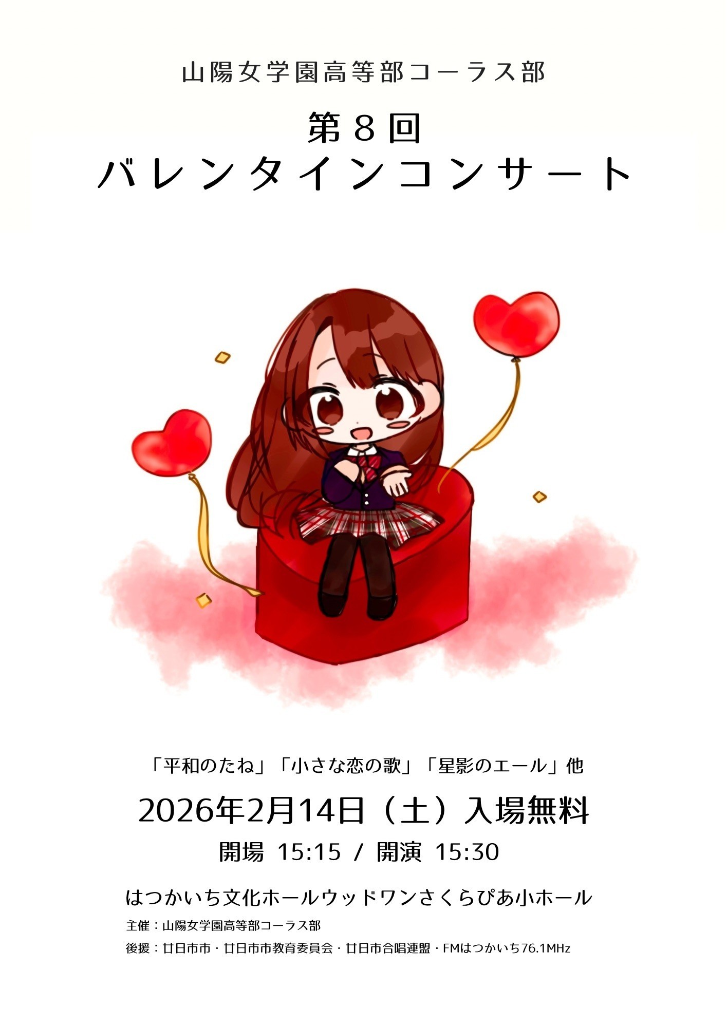 2月14日廿日市文化ホールさくらぴあ小ホールにて8回目の定期演奏会を開催しました。今回はいつもの「スプリングコンサート」としてではなく、様々な愛をテーマに曲を選曲した「バレンタインコンサート」として開催しました。