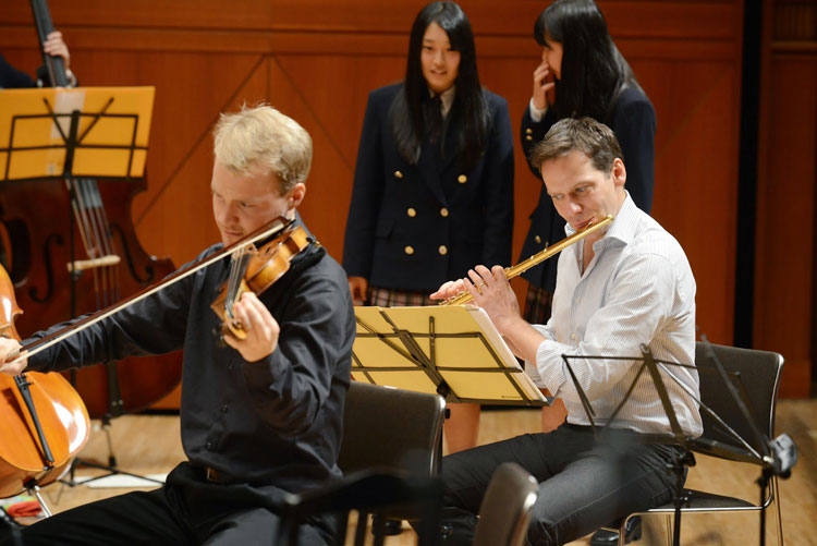 みんな緊張した顔の中、TVの中でしか見たことのない楽器の名手たちが、目の前に・・・。