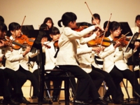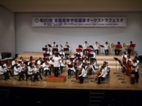 高校オーケストラの全国大会にあたる大会です。各地方から選抜されたオーケストラ部が集まり、それぞれの演奏を聴きあい評価しあいます。また、各校から選抜された人での合同演奏は、大会の名物。プロから指導をうけ、演奏を発表します。本校は連続で中国地区代表に選ばれています。