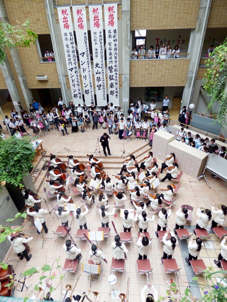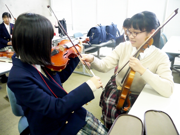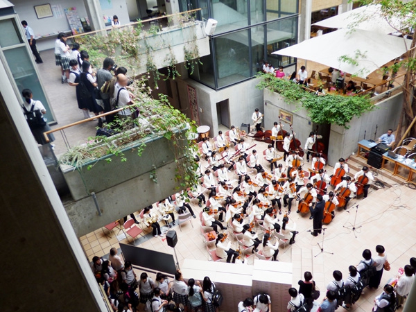 中等部・高等部合同のオープンスクールが開催されました。管弦楽部の出番は、高等部クラブ体験と、ステージでの発表!クラブ体験の後、一緒にステージにのってくれた中学生もいました。皆さん、私たちと一緒に、オケしませんか?