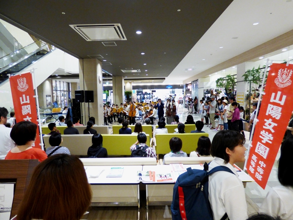 LECTは、今年4月に広島市西部にオープンした大型商業施設です。6月の金曜夜は山陽女学園の音楽系クラブが演奏会を行いました。管弦楽部はそのトップバッターでしたが、多くのお客様が足を止めて私たちの音楽を聴いてくださいました。