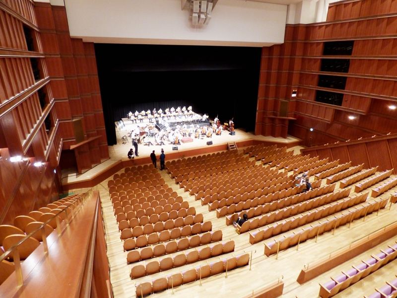 早朝に楽器積み込み、そして出発。昼には東大阪市市民ふれあいホールにて音出し。夕方、大会会場である奈良県橿原文化会館にてリハーサルを行いました。