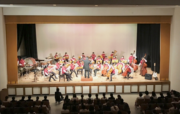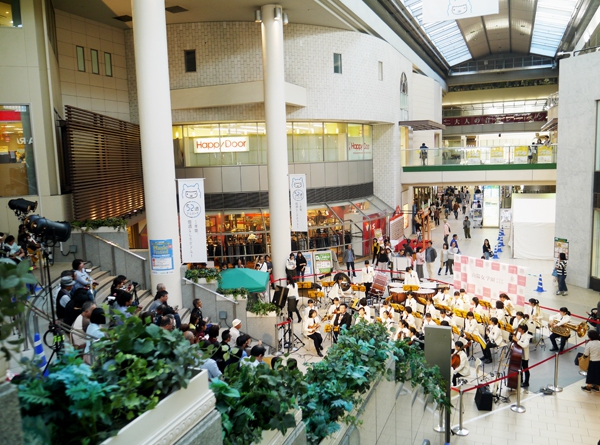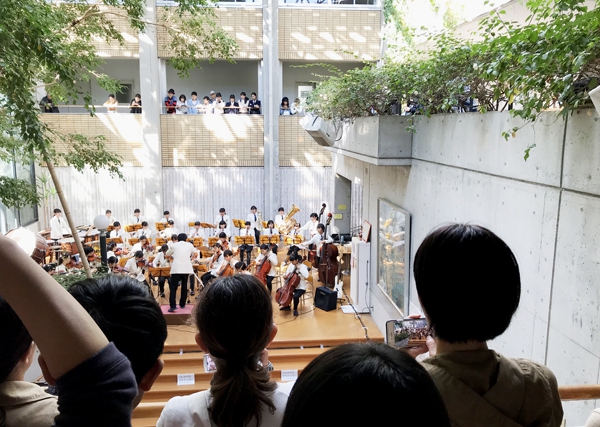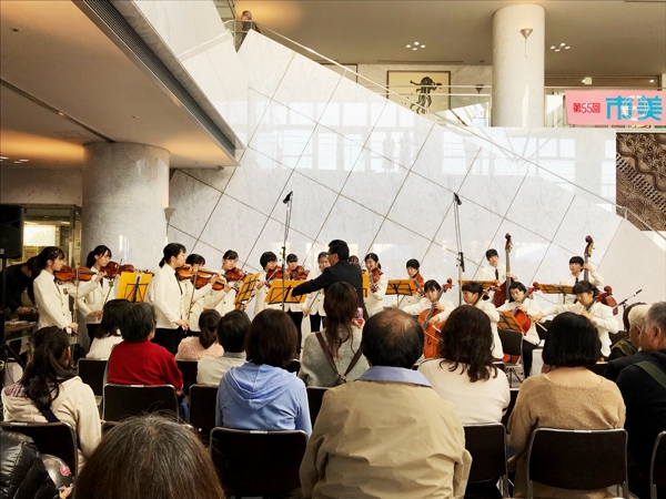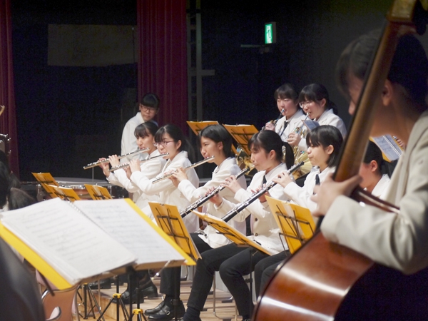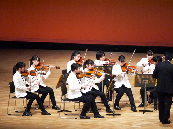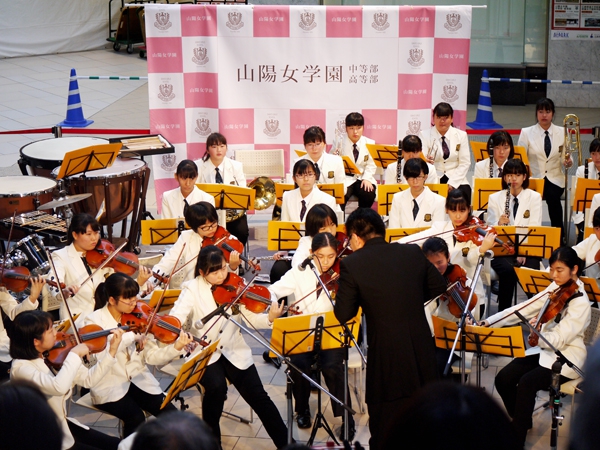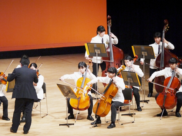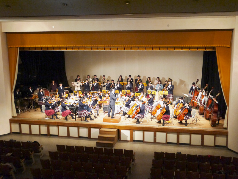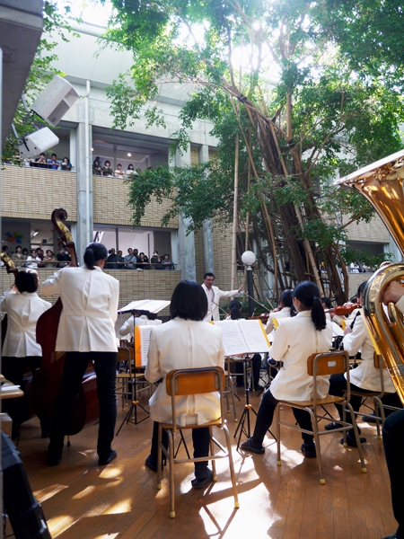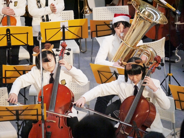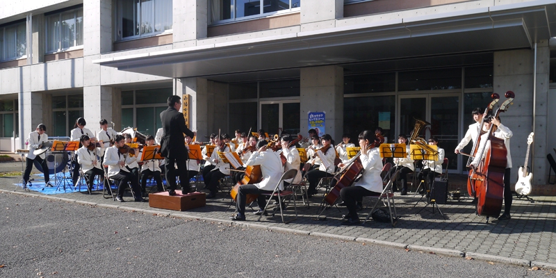 高等部生徒会の会長・副会長たち司会進行のもと、コーラス部と管弦楽部が出演しました!アルパークの催しで演奏してきた中で、一番お客様が多い演奏となりました。