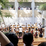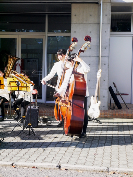 一般公開日!各クラスの出し物、くすの葉会(保護者会)による食販バザーなど多数の催し物がある中、管弦楽部は体育館ステージとカフェステージで演奏しました。体育館では管打楽器アンサンブル、弦楽器アンサンブル中心に、カフェステージではさんじょでチャレンジで一年間一緒に練習してきた小学生と共演しました!