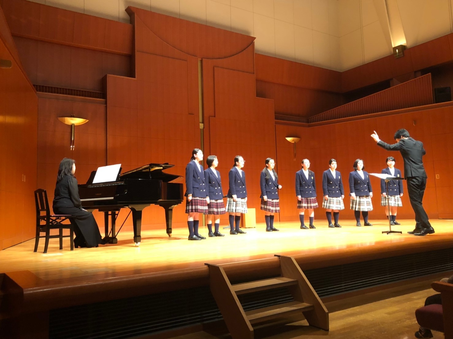 令和2年2月22日廿日市文化ホールウッドワンさくらぴあ小ホールにて、2回目のスプリングコンサートを開催しました。第1部は、国内外のアカペラ作品を中心に演奏しました。第2部では、前半にJ-pop作品をオリジナルアレンジで、後半に童謡メドレー「いつの日か」を抜粋して演奏しました。アカペラ作品は響きの良い環境の中気持ちよく演奏することができました。J-popの演奏では、マリーゴールドの花をお客さんに手渡す演出をしました。最後にOGメンバーと一緒に歌った童謡メドレー「いつの日か」では、一つ一つの曲の時代背景や詩の意味を全員で考えながら丁寧に歌いました。演奏を聴いて下さった方からは、「大好きな里の秋を聴きながら胸がいっぱいになり涙が出ました。」「遠い昔の中学時代を思い出しました。」など沢山の感想を頂きました。来年の第3回スプリングコンサートは、2021年2月23日(火)に開催を予定しています。ご来場をお待ちしております。