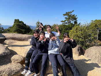 高等部3学年は宮島弥山に登りました。今年は天候にも恵まれ、登山道からの絶景を眺めながら自然を満喫することができました。友人同士で声をかけ合いながら一生懸命歩き、最後は笑顔で終わることができました。残りの学校生活も楽しんでほしいです。