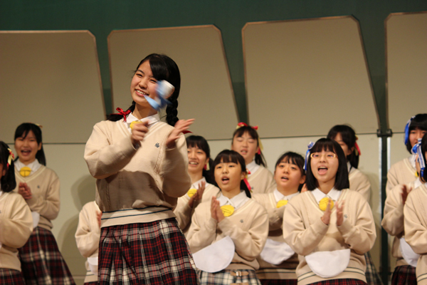 高等部生は、言葉ひとつひとつに気持ちを込めて歌い上げていました。歌声だけでなく、服装にも工夫が見られ、見ている人みんなを楽しくさせました。