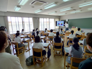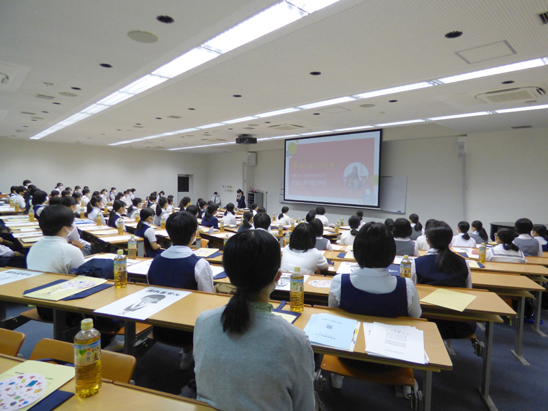 そして、ベネッセから講師をお招きして「進路講演会」を行いました。高2の夏が進路決定のターニングポイントであること、進路選択は周りの意見も聞きながら目標を高く設定し決定することなどのお話を真剣に聞いていました。事前アンケートからの質問にも答えてくださいました。迷いや悩みが解消し今後の学習の進め方が具体的になればいいと思います。