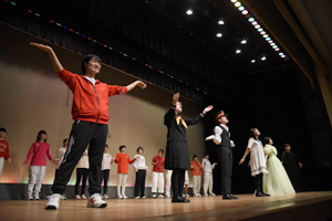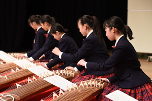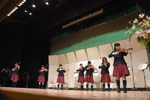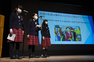 本校オリジナルの総合学習プログラム「個性輝き学習」の1年間の成果を発表する「個性輝き学習発表会」を開催しました。1年生は7つの楽器に分かれ演奏、2年生はミュージカル・アニメーション制作の2つに分かれて、3年生はグループごとに研究してきたテーマを英語でそれぞれ発表しました。
