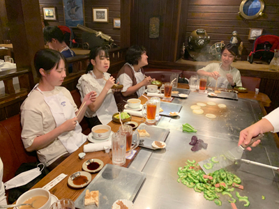 4日目の夜はステーキ屋さんを貸し切りにしてみんなで食べました。ステーキや横に添える野菜などを目の前で焼いてくれました。初めてだったのでとても興奮しました。