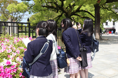 まずは被爆者体験講話を聴かせていただきました。貴重な講話を聴きながら必死にメモを取る生徒も多くいました。その後平和資料館と碑めぐりに行くグループに分かれ、各々の班で公園内をめぐりました。現在も世界で戦争が起こっています。多くの人が犠牲になり、戦争の恐ろしさをニュースなど様々な媒体を通して生徒たちも日々感じていると思います。今日の研修を通して、平和の重要性とヒトの命の大切さについて再認識し、二度と戦争は繰り返してはならないと強く感じたのではないかと思います。