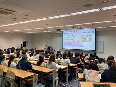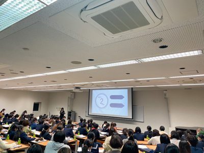 11月5日(土)に、広島国際大学の方にご来校いただき、医療に関わる仕事にはどんなものがあるのかや、病院で働いたり患者さんと接する仕事以外に医療の知識を活かした仕事(周辺産業)があることも知ることができました。