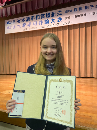 11月13日に開催された「第31回 日本語による世界平和弁論大会」にドイツの留学生のミリヤム・アレックスさんが出場しました。彼女は、「平和は創造の源」というテーマでスピーチをしました。