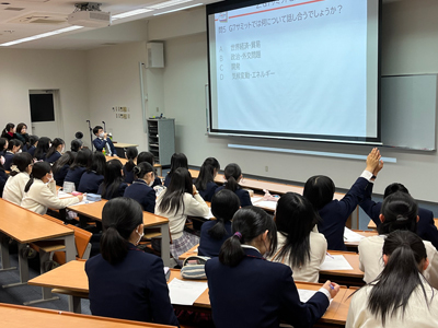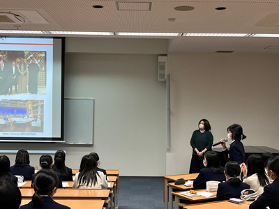 高等部1年1組、2組と、中等部の生徒は外務省、大臣官房 G7広島サミット事務局の佐古 陸也さんに「国際舞台で活躍する外交官と話そう!サミット塾」という講演をしていただきました。普段お話する機会のない外交官の方から外務省の仕事や外交官の仕事内容、G7サミットについてとても分かりやすく、楽しく説明していただきました。今回の講演を通じて国際社会へ関心を持つことや、広島に住む私たちだからこそ伝えられる平和への思いを海外に発信する意義など考えてほしいと思います。