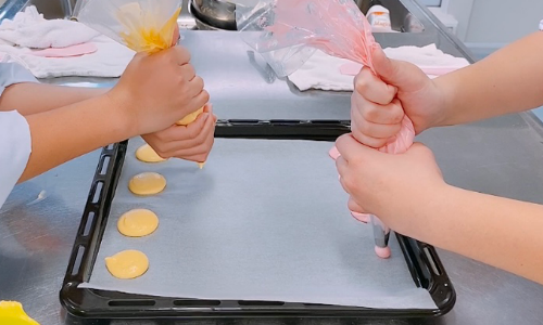当日は20名を超える中学生に参加してもらい、かわいいマカロンを作ることができました。