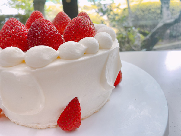 スポンジを4枚切りするところから、仕上げのデコレーションまで教えていただきました。店頭に並ぶケーキのような見栄えを目指し、ナッペを行いました。