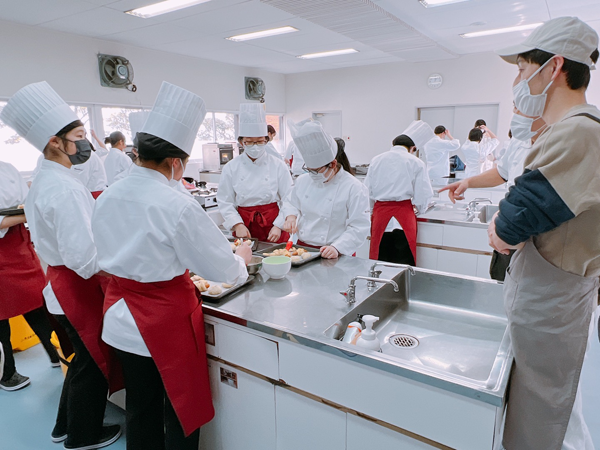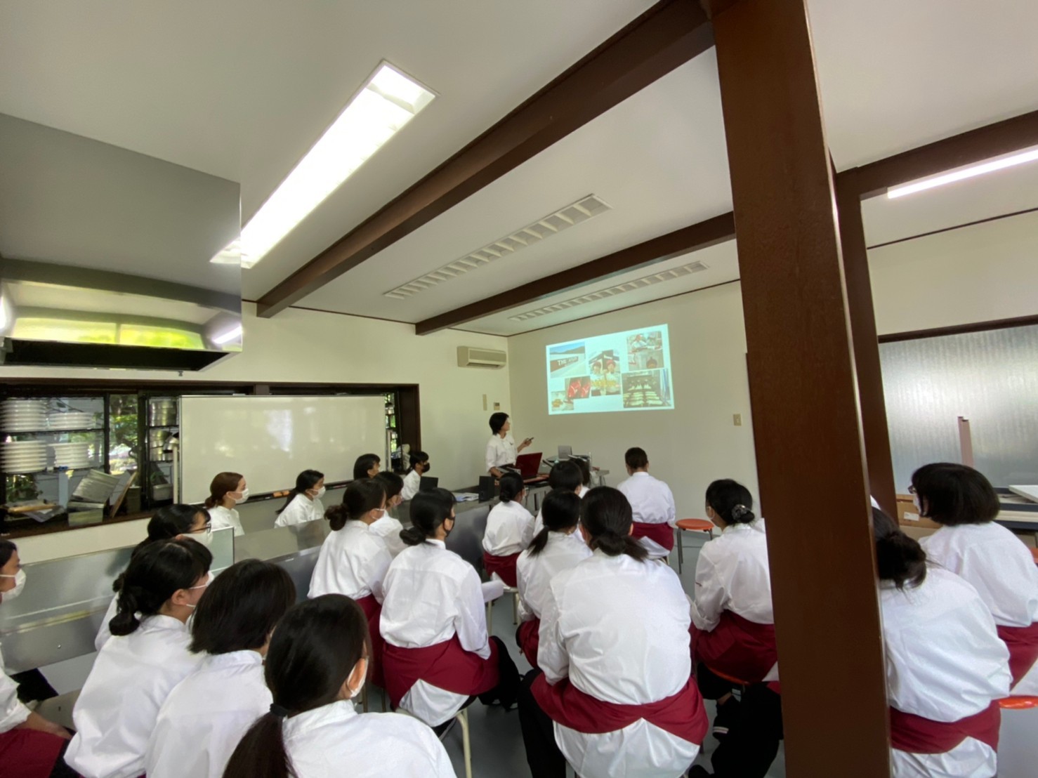 今回は1年6組全員で広島酔心調理製菓専門学校を見学しました。2年次のスクーリング内容や実技のデモンストレーションを受けました。
