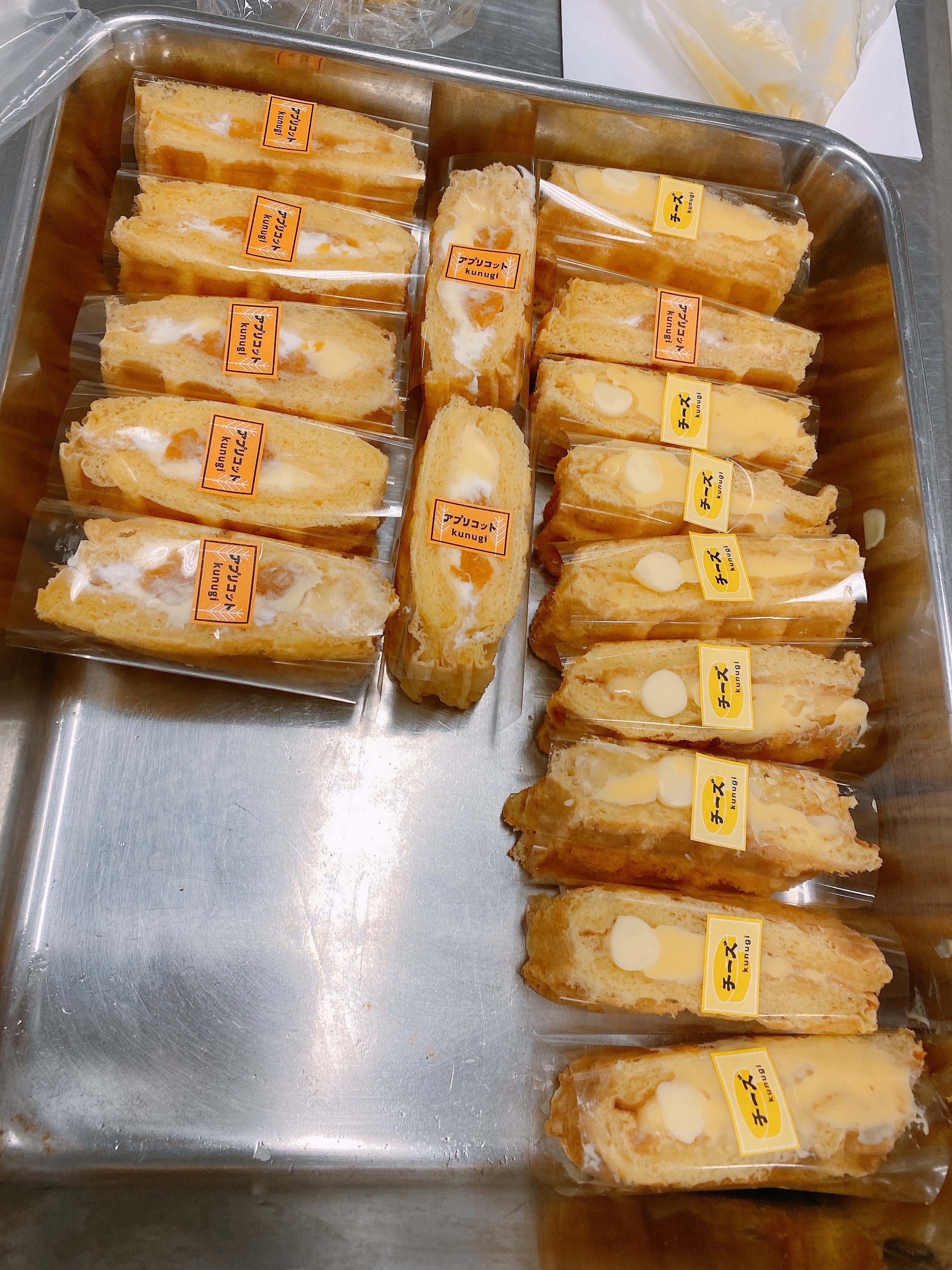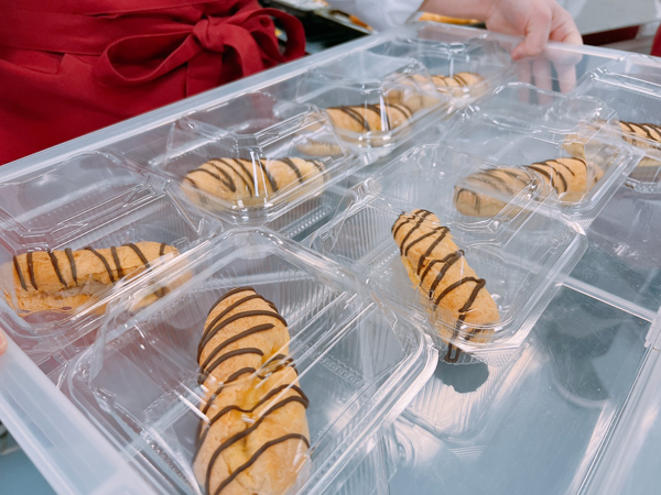 1年生は、【カスタードタルト、エクレア、ルクセンハウス】を提供しました。班ごとに製作品を決め、試作・検討を行い、この日を迎えました。