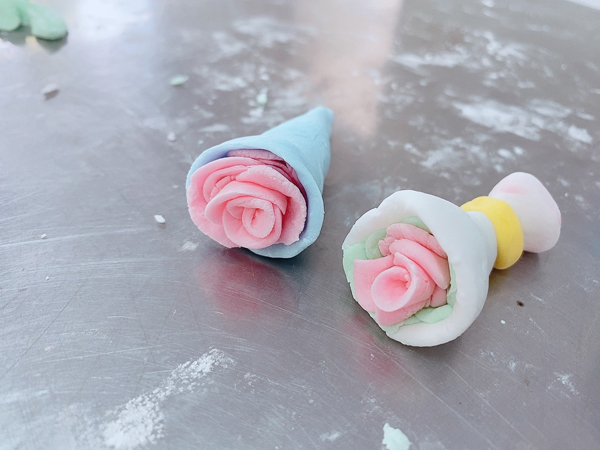 シュガー細工で一番イメージしやすいものは、クリスマスケーキのサンタ人形だと思いますが、今回は小さいバラを作成しました。
