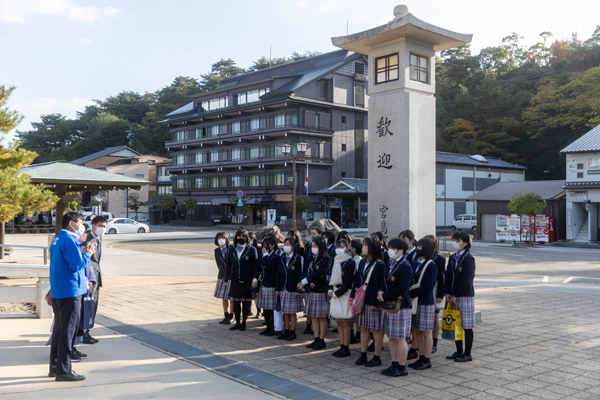 到着後すぐに宮島観光協会の上野さんから講話をいただき、宮島の観光資源について理解を深めることができました。
