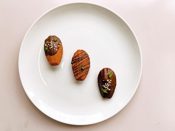 フィナンシェには香ばしい焦がしバターを作り、生地に加えました。マドレーヌにはレモンの皮をアレンジとして加え、