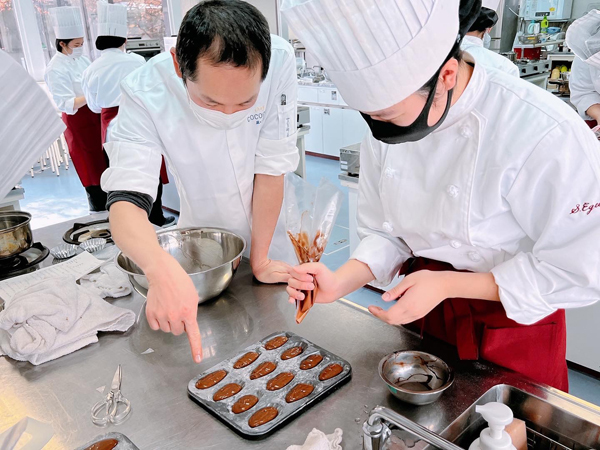 実技指導の際には、「ただのお菓子」としてではなく、「販売する商品」としてのお菓子にするためのコツや、