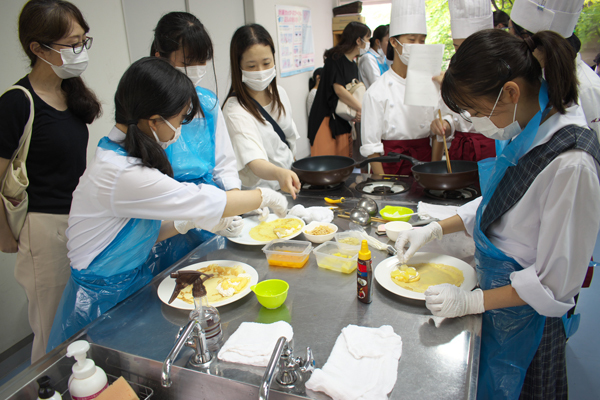 パティシエコースは今回の高等部オープンスクールで、【オリジナルクレープ体験】を行いました。