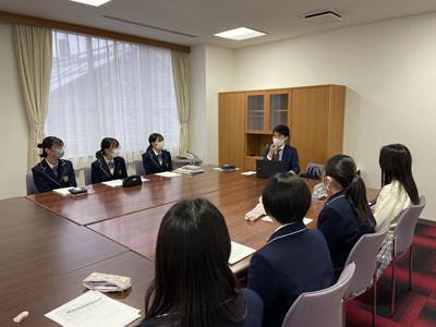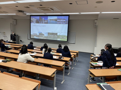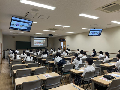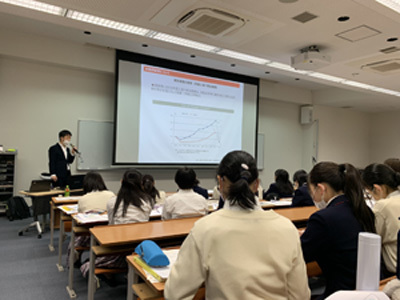 本校のベンジャミンホールにて、外交官の方からお話を聞きました。