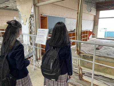 小学校に訪れた時、津波によって引き起こされた建物への被害の影響が、自分たちの想像をはるかに超えるもので、恐ろしさと衝撃を受けました。