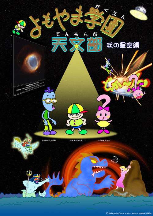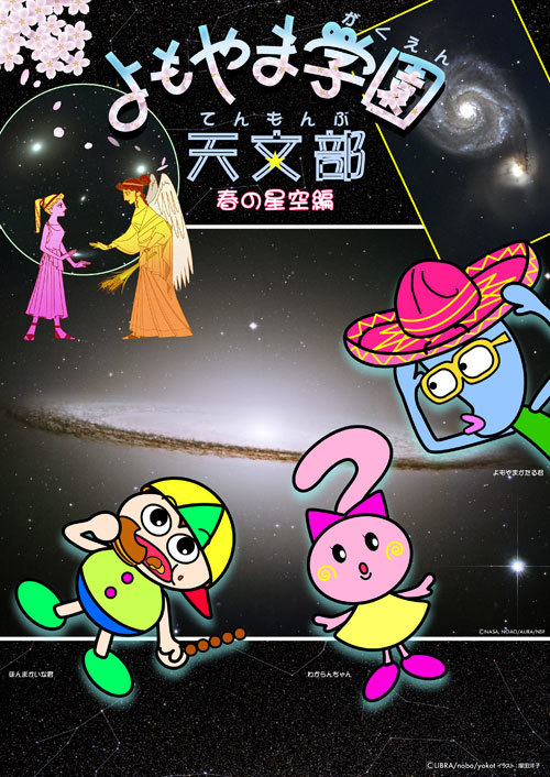 今夜もよもやま学園天文部の3人が、星見会の打ち合わせをしています。お花見の後でしょうか、さくらの花につられてらんちゃんとかいな君は、俳句を思いつきましたが、部長のよもやまかたる君は、そんなことより星を見るようにといいます。