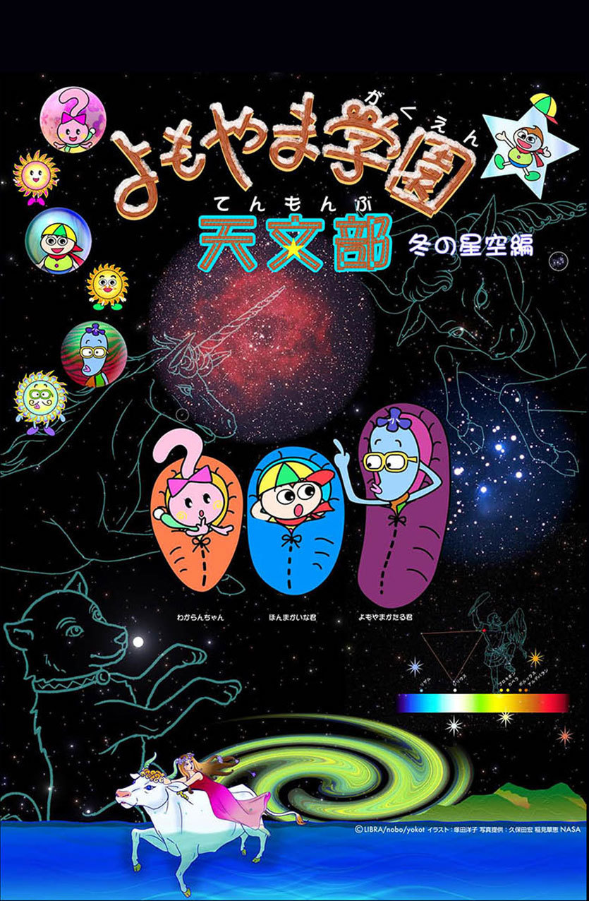 今夜もよもやま学園天文部の3人が、星見会の打ち合わせをしています。星がなぜまたたくのか、という素朴な疑問から、冬の大六角形と温度くらべ、おうしにさらわれたエウロパ姫のおはなし「おうし座の神話」、冬の大三角形の中に隠されたひみつ、オリオン大星雲やプレアデス星団の生成まで、様々な解釈で展開します。