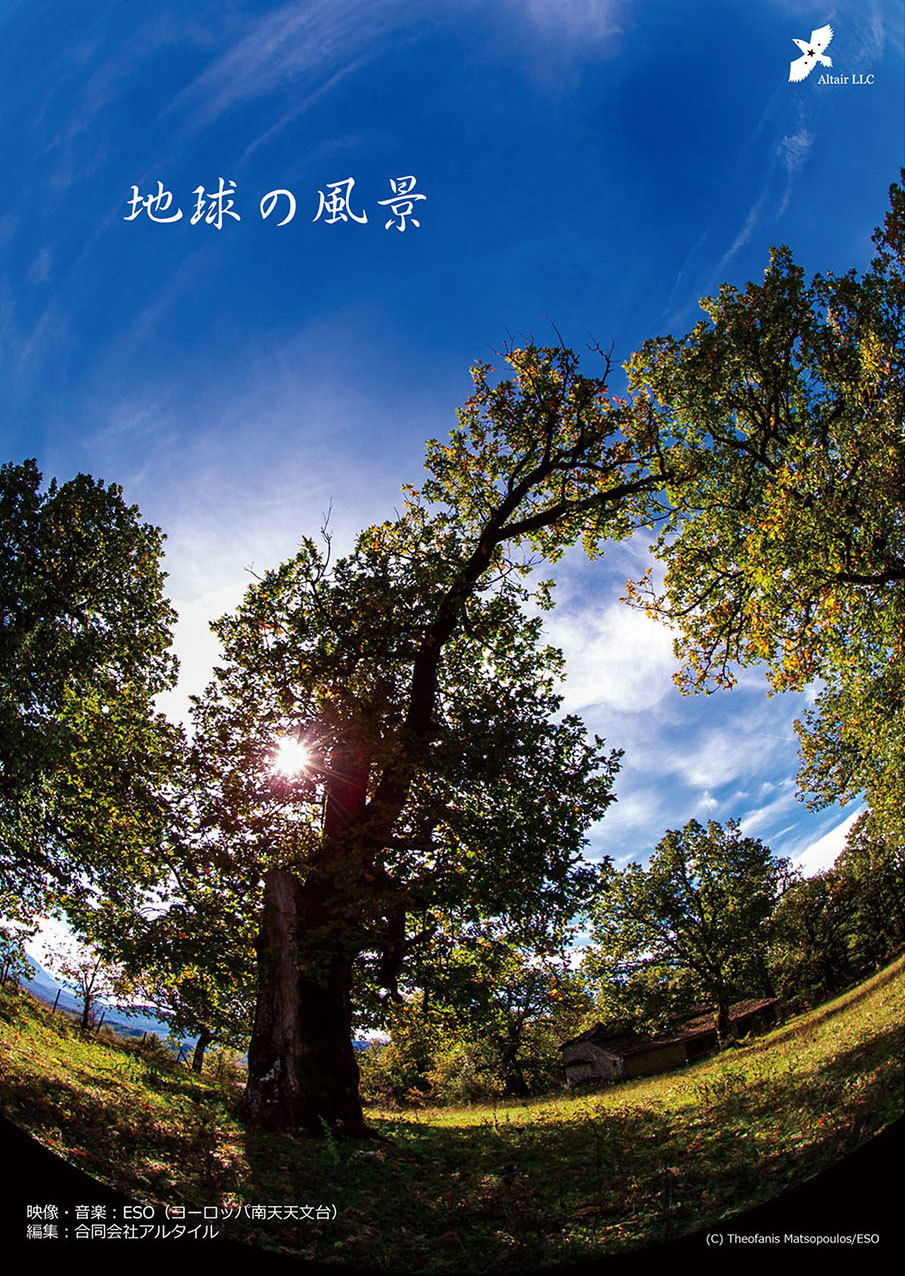 世界各地の美しい映像と心地良い音楽のコラボレーションをお楽しみいただくドーム映像作品です。この作品はEOS(ヨーロッパ南天天文台)のウェブサイトに公開されている映像・音楽アーカイブを、合同会社アルタイルが独自番組に編集しています。ESOが公開している映像アーカイブは、宇宙に関する映像の他に、タイムラプス撮影による様々な風景映像も公開されています。これらをドーム空間でお楽しみいただく作品として仕上げました。解説・ナレーションは一切なく、のんびりと寛いでご覧いただく作品となっています。