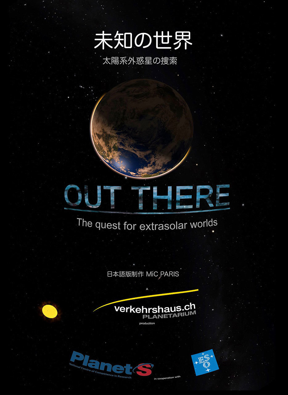 スイス交通博物館で制作された全天周映像作品『未知の世界』(原題"Out There")の日本語版です。近年観測技術の向上に伴って、私たちの太陽以外の恒星の周りにも、たくさんの惑星が見つかるようになってきました。従来はSF物語だと思われていたような事実も、次々と発見されています。ひょっとしたらそれらの惑星の中に、生命の生存に適した環境があるのかも知れません。この作品では、未知の世界に想像を膨らませてきた人類の歴史と、太陽系外惑星を発見するための科学者の取り組みを紹介しています。