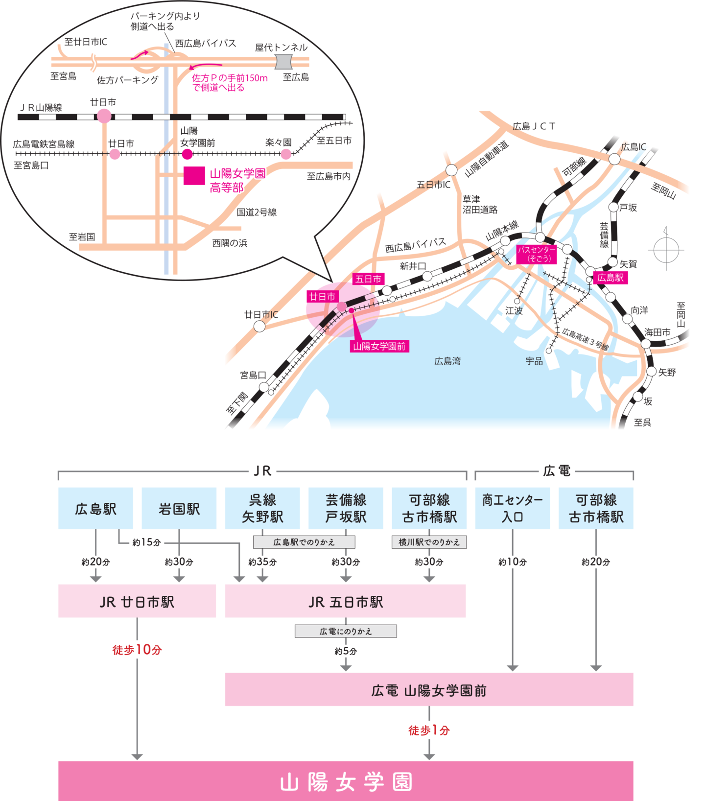 山陽女学園は1929年(昭和4年)に地域の方々の要望により廿日市に創設された女性のための学校です。社会における女性の地位向上を求め、女性の自立や女性の役割の重要さを強く唱えてきました。「未来に輝く女性を育てる」という建学の精神のもと、生徒一人ひとりの個性を尊重し、平和と奉仕の精神を持つ女性を育成するという理念は、開校以来100年間の長きにわたり今も受け継がれています。これからの社会はより女性の活躍が重要となります。山陽女学園では生徒が主役、教員はコーチ役という考えのもと、生徒主体の教育活動を心がけています。女子校という好環境の中で一人ひとりが自己肯定感を高め、人から信頼される人間となれるようたくさんの経験を積み上げながら成長していくサポートを精一杯していきたいと思います。