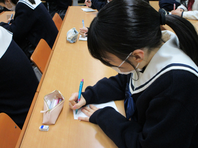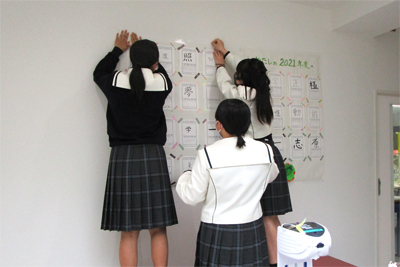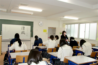 「国語総合」、「国語演習」の授業の一環として、「第9回 今、あなたに送りたい漢字コンテスト」の応募に取り組みました。このコンテストは、家族や恋人、友人や恩人、そして自分自身にあてて、日頃は言えない素直な気持ちを、漢字一字に託して、メッセージを添えて表現するものです。どの作品にも、丁寧に書かれた漢字と素敵なエピソードが添えられていました。日頃から、感謝する素直な心を持つよう願っています。