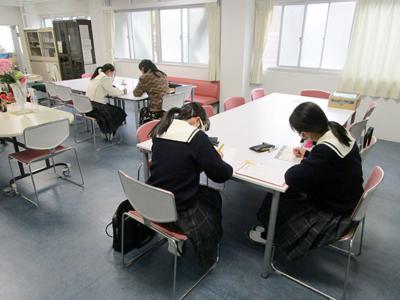 スクーリング日朝の、談話室の様子です。早めに登校した1年生は、黙々と各々、時間割確認をしたり、授業の予習をしたり、提出物の確認をしていました。まだ、緊張感があるようですが、徐々に自分のペースをつかみ、自己管理ができるようになってほしいと願っています。