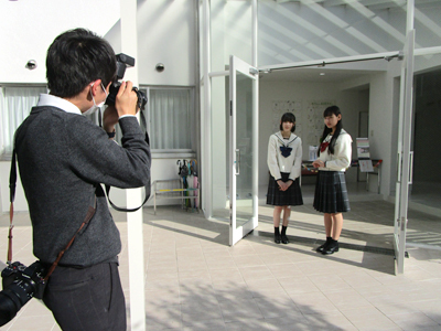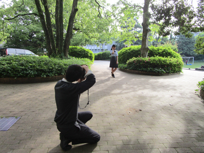 在校生モデルを募集し、5月中旬に写真撮影を行いました。写真同好会顧問でプロ級の腕を持つY先生に、ご協力頂きました。始めは緊張していた生徒も、徐々に自然な笑顔が出るようになりました。撮影された写真は、HP・パンフレット・ちらし等に使われます。