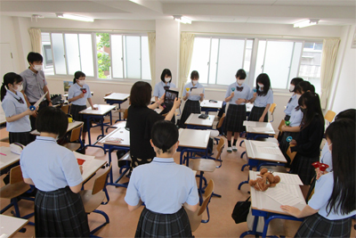 7月10日、今年度第1回目のオープンスクールを開催しました。早い時期にもかかわらず、多くの生徒・保護者の皆さまに出席いただきました。ありがとうございました。今回のオープンスクールは、生徒と教員が一緒になってリアライズコースの魅力を伝えようという思いで企画しました。説明会は、生徒によるハンドベル合奏から始まり、学校長挨拶、教員による学校紹介、今年4月に入学してきた1年生の近況報告と盛りだくさんの内容でした。後半は、5グループに分かれ、生徒が校舎内の案内をしました。次回は、9月23日(木・祝)に予定しています。ぜひご参加ください。