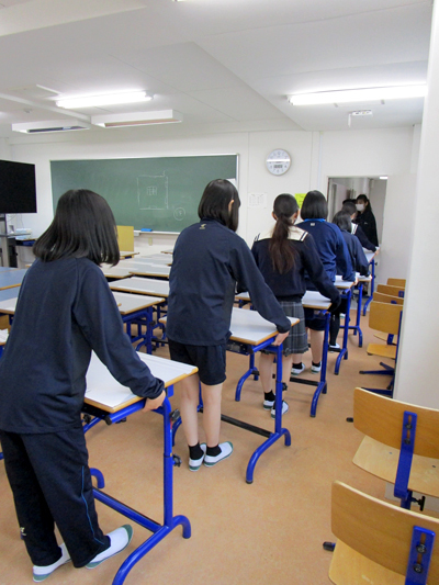 新年最初の登校日に、リアライズコース全員で『第1回避難訓練』を行いました。授業中に地震が発生し、その後火事が起こり避難するという想定で訓練を行いました。地震発生直後、落下物から頭を守るよう机の中に隠れました。揺れがおさまったら、煙を吸い込まないよう身を屈めながら、建物外の安全な場所まで速やかに避難しました。天災は忘れた頃にやってきます。日頃から、もしもの時の備えをし、防災への意識を高めておきたいものです。