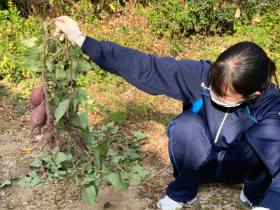 6月に植えたサツマイモの苗が、大きく育ち始めています。この日は、畑を整える作業を行いました。雑草を抜いたり、土を盛り直したり、みんなで丁寧に畑の手入れをします。