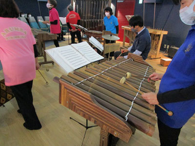 みんなで輪になって曲を奏でました。