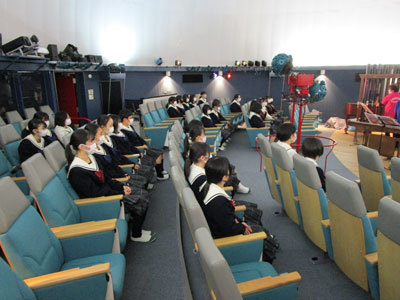 今日は、特別活動の時間を使って、「山女WOODONEプラネタリウム」でプラネタリウム鑑賞をしました。「夏の大三角形」の本当の形や、夏の代表的な星座、さそり座にまつわる神話など、生徒たちにとって興味深い内容でした。「山女WOODONEプラネタリウム」は一般の皆さまにもご鑑賞いただけます。